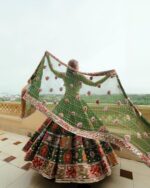 This is the Main Garment of The Ancient Culture And Tradition of Gujarat & Rajsthan. This Lehenga is used by Gujarati and Kutchi women during our Indian Culture main Navratri festivals. Especially this lehenga choli has become the main fashion nowadays not only for Gujarati women but all over India also during Navratri festival. A part from Gujarat, in the states like Maharashtra, MP., UP, Rajasthan, Delhi, this fashion is ahead, in Bollywood too this Gujarati navratri ghagra choli fashion has become famous. / Bhatigal lehenga/ Gujarati Chaniya Choli/ Ghagra Choli is said by all names. The main specialty of Navratri festival lehenga is that, this lehenga choli is colorful, mirror Work, Colourfull Lace Work, and different prints , Embroidery ,Jumkha/Latkan/Earing are attractive.This lehenga choli is made of fabrics like muslin cotton silk/crepe silk/Faux Georgette. A part from this, there is full ghera/flare so that the full Ghera becomes Attractive while playing Dandiya & Garba.The Tradition of playing Dandiya for 9 days of Navratri is wearing a Ghagra Choli and playing Dandiya and Garba is a world tradition and a dry festival for women. The women put the garb in their heads and hang the garb on their heads and go around in a circle around the goddess. But the flare of this dress is very pleated and twisted. The mirror rat is the main flash. This is the identity of Garba and Navratri. Nowadays, Navratri Gujarati lehenga has become the fashion trend & Famous in many countries of the world.